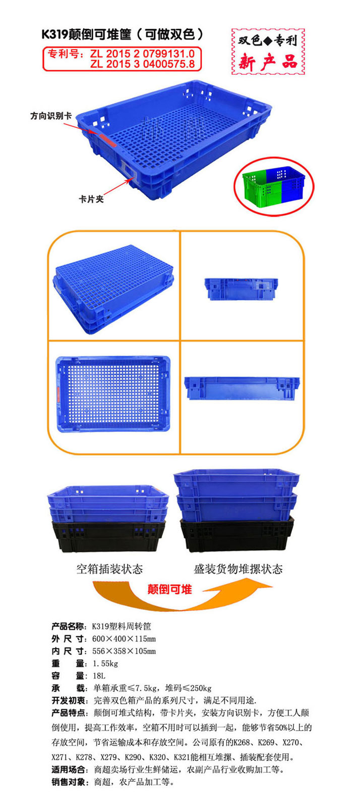 雙色塑料箱 塑料托盤 卡板箱 EU型物流箱 TP型物流箱 可堆式物流箱 通用塑料箱 通用塑料筐 顛倒可堆筐 塑料盤 塑料盒 塑料桶 ABS深水網浮 零件盒 塑料墊板 塑料垃圾桶 其他定制