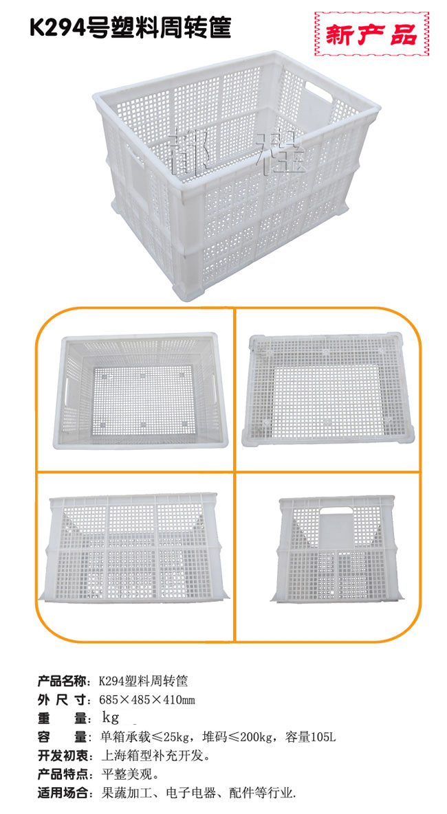 較早從事塑料托盤、塑料周轉箱生產,主導產品有塑料托盤、塑料周轉箱|筐、各種型號塑料筐、各種塑料盒|零件盒、ABS深水網浮等,產品品種有300多種,能夠滿足各行業貨物的倉儲和運輸的需要。