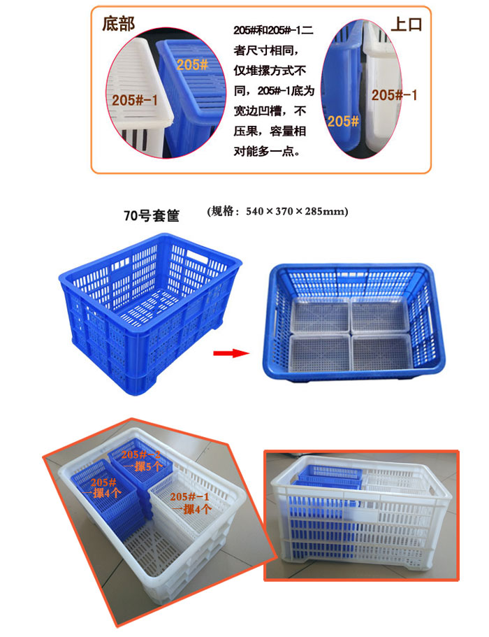 較早從事塑料托盤、塑料周轉箱生產,主導產品有塑料托盤、塑料周轉箱|筐、各種型號塑料筐、各種塑料盒|零件盒、ABS深水網浮等,產品品種有300多種,能夠滿足各行業貨物的倉儲和運輸的需要。